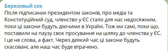 Международная организация Комитет защиты журналистов (CPJ) призвал парламент Украины отказаться от законопроекта о медиа. Мол, документ расширяет полномочия Национального совета по телевидению и радиовещанию, государственного регулятора телерадиовещания, позволяя ему регулировать онлайн- и печатные издания, аннулировать регистрацию и лицензию любого СМИ, блокировать онлайн-СМИ без решения суда, и требовать от платформ социальных медиа и веббраузеров удалять содержимое, запрещенное законом.