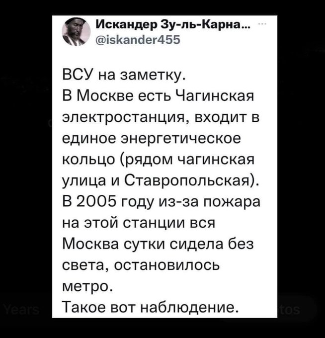"путін - це сплячий агент ЦРУ, якого 24 лютого "розбудили", щоб він за півроку знищив російську армію, перезавантажив НАТО, очистив континентальну Європу від "руского міра" і змусив її скинути російський газовий зашморг з шиї, провів дерусифікацію України, підштовхнув Україну вступити в ЄС і створити найпотужнішу армію на континенті. За законами жанру, далі в цій п'єсі сплячий агент має самознищитись, ,, а імперія остаточно розпастись".