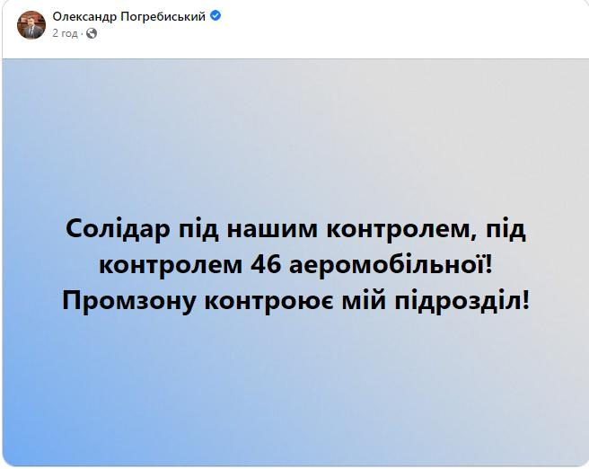 Город Соледар находится под контролем Вооруженных сил Украины.