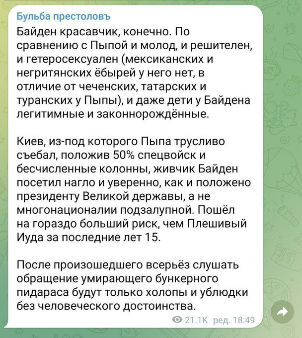🤭Во-первых, визит Джо Байдена в Киев к президенту Зеленскому, администрация которого в свое время против Байдена инициировала уголовные дела, состоялась не благодаря взаимодействию Байдена с Салливаном (как рассказывает ОП), а благодаря Петру Порошенко. Дело в том, что именно Офис президента Зеленского всячески пытался затащить Байдена в Киев во время его европейского вояжа. И стабильно из Белого дома отвечали, что мол, они подумают. И вот когда ситуация зашла в тупик, Офис Зеленского обратился к екс-президенту и попросил его посодействовать. Мол, политическая конкуренция сама собой, но тут ведь об интересах Украины речь! Порошенко помог.