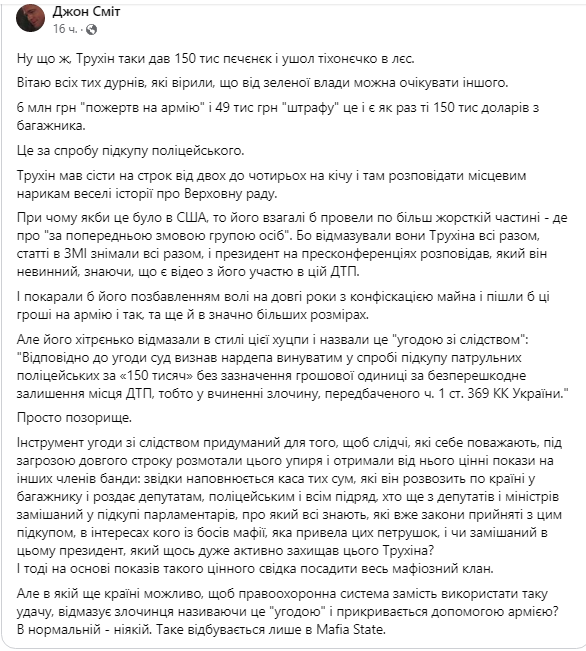 PРS Якщо б я та інші не публічно не підіймали питання про Трухіна, то він і далі тихо сидів би