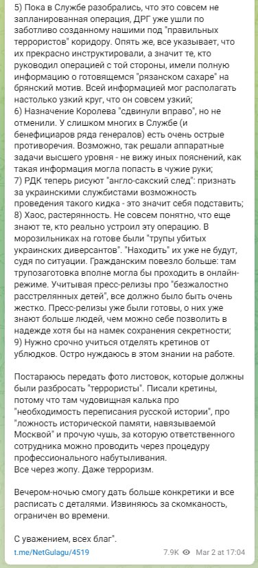 Кстати про Угледар. Ещё одна убогая методичка: «атака ВСУ на Брянскую область нужна, чтобы спровоцировать РФ на наступление и совершить контр-атаку».