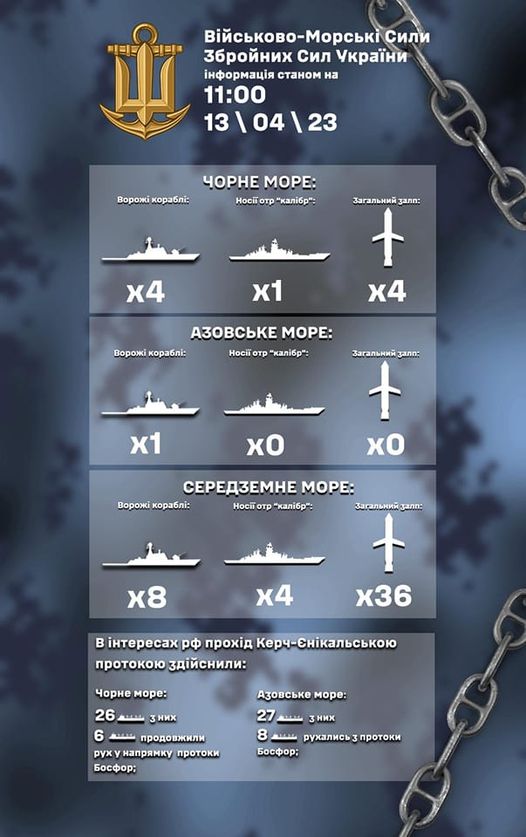- в Черном море на боевом дежурстве находится 4 вражеских корабля, среди которых 1 носитель крылатых ракет "калибр" общий залп до 4 ракет;