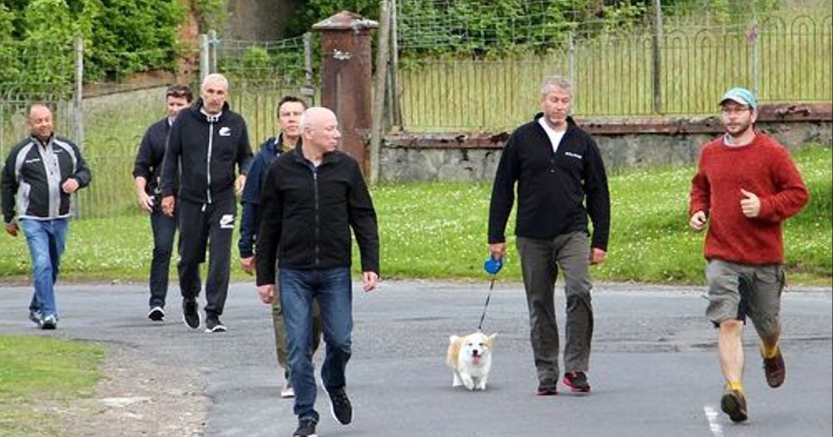 Как видно на фото, их сопровождает собака породы корги. Поэтому один из британских-сайтов экспресс-информации ошибочно назвал композицию "Абрамович с телохранителями выгуливает собаку". Однако позднее информированные источники разобрались, кто есть кто, и оценили, сколько стоит каждый из участников прогулки.