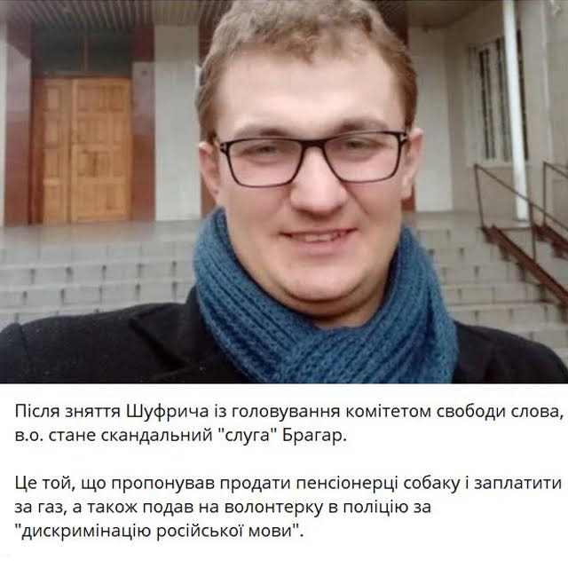 "А пока и.о. Главы Комитета по свободе слова станет Евгений Брагар", - добавил парламентарий.