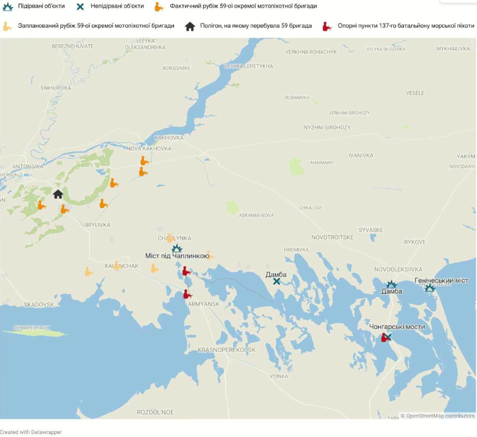 "На перешейке Чонгар есть два автомобильных и один железнодорожный мост. Кроме них готовыми к подрыву были мост в Геническе и еще 4 дамбы вдоль границы с полуостровом. Единственные мосты, с которых преграды со временем сняли, расположены дальше вглубь материка, на Северо-Крымском и Каховском магистральном каналах. Их разминировали еще до 2018 года, так как уменьшалось количество военных на юге, и некому было эти мосты удерживать", - отмечают журналисты.