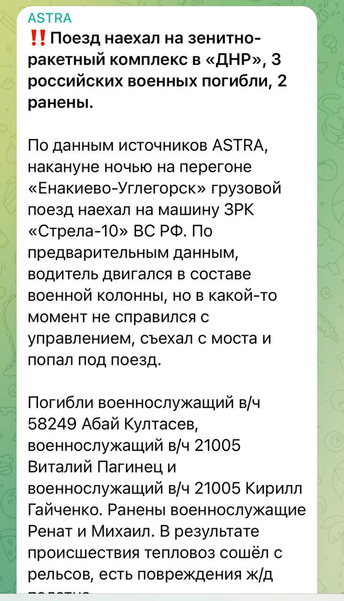 На оккупированной территории Донецкой области, на жд перегоне Енакиево-Углегорск грузовой поезд раздавил российский ЗРК «Стрела».