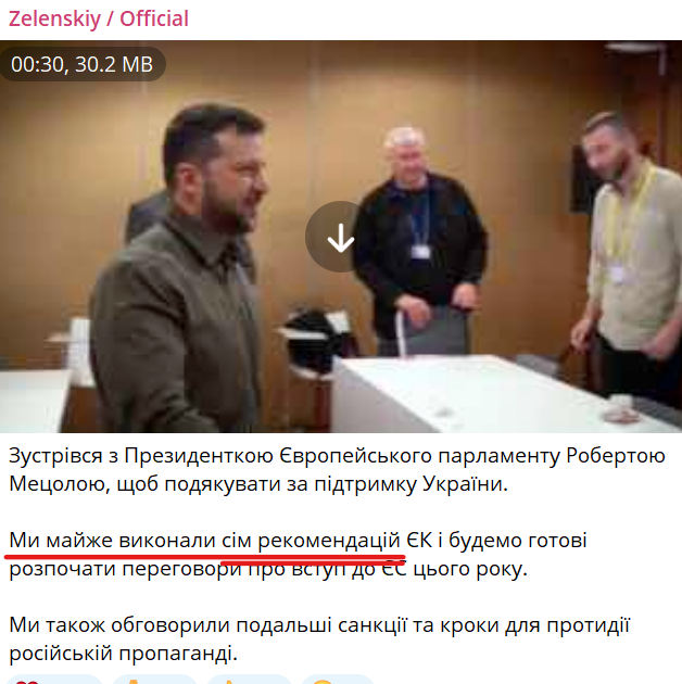 Ожидаем историческое заключение - отчет о выполнении Украиной рекомендаций Еврокомиссии, - Зеленский. ВIДЕО