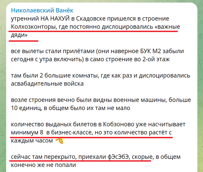 Во временно оккупированном Скадовске в Херсонской области сообщают о "прилете" по расположению рашистов.