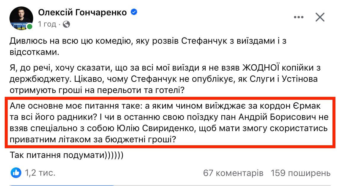 За словами народного депутата, рекордсменом за вартістю закордонних поїздок став заступник Офісу Президента Ростислав Шурма. Лише за 2023 рік йому компенсували з державного бюджету за відрядження 428 тисяч гривень".