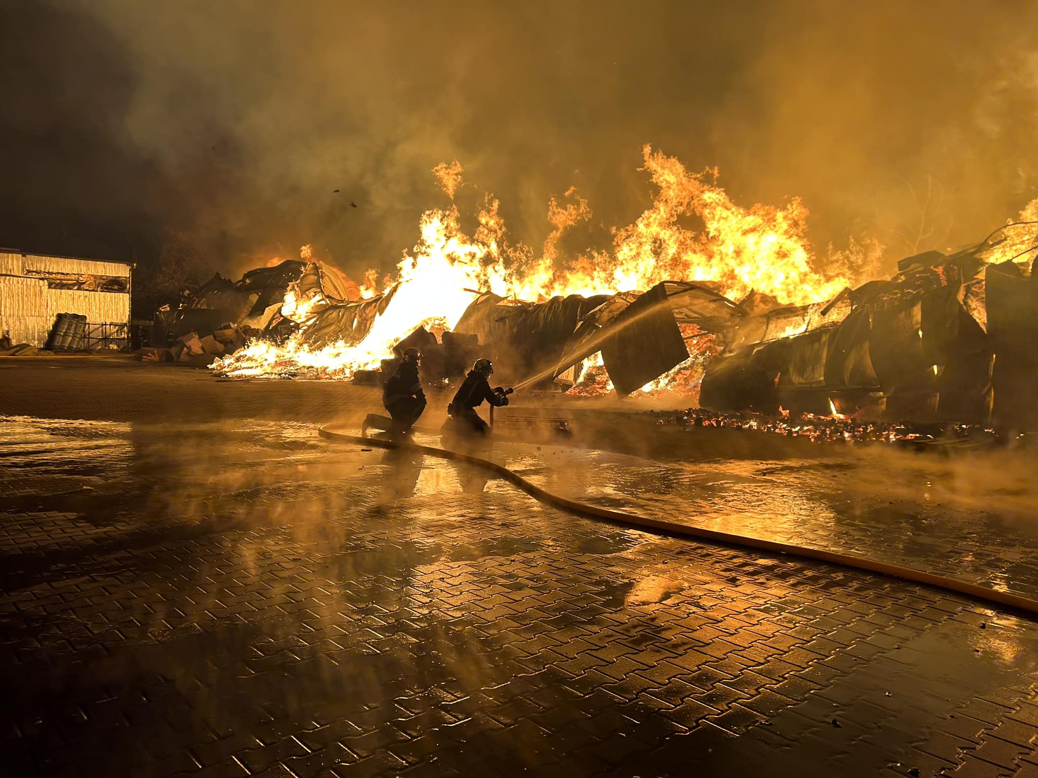 После вражеской атаки в Подольском районе Киева пылает складское здание