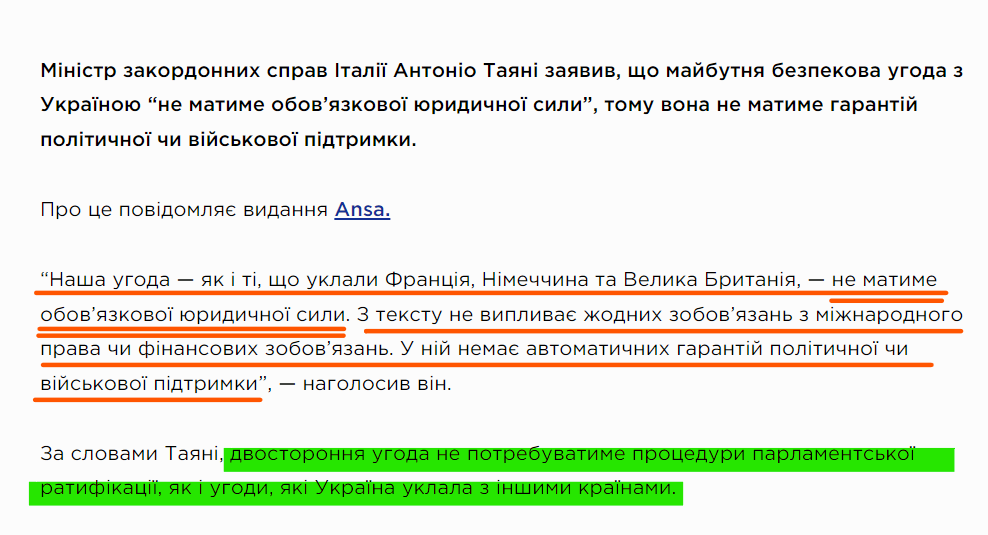 ну вот й відверте підтвердження. Вот що Зеленський та Єрмак подають, як свою перемогу. Міністра закордонних справ Італії напевно забули попередити, що українському народу треба брехати відповідно до заяв Зеленського