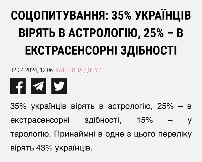 Об этом свидетельствуют данные опроса Социологической группы "Рейтинг" от имени Центра анализа и социологических исследований Международного республиканского института, проведенного 17-21 февраля 2024 года, передает Цензор.НЕТ.