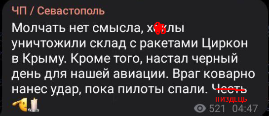 Об этом сообщает Цензор.НЕТ со ссылкой на российские Telegram-каналы.