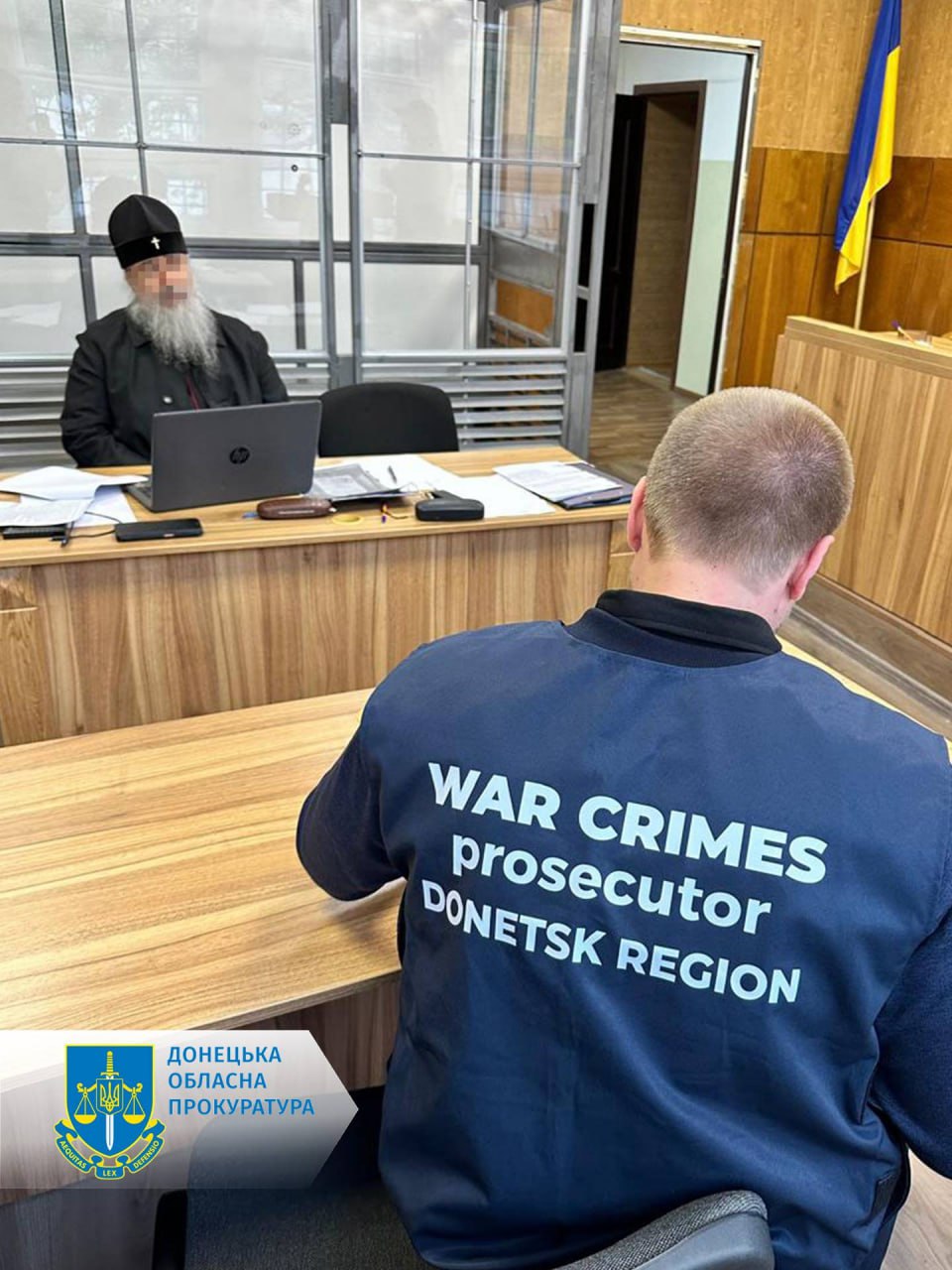 Прокуроры сообщили, что в сентябре 2023 года настоятель Святогорской Свято-Успенской лавры УПЦ МП распространял информацию военного характера. В частности, во время своей проповеди он рассказал верующим о местах расположения блокпостов, а также подразделений Вооруженных сил Украины, Службы безопасности Украины, Национальной полиции Украины и Сил обороны Украины на территории Святогорской городской территориальной громады.