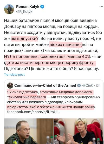 Прошу вжити заходів та усунути від прийняття важливих військових рішень людей, які не зацікавлені у збереженні особового складу, виконанні завдань та перемозі. Військова честь та честь офіцера - не пусті слова. Принаймні такими вони не повинні бути».