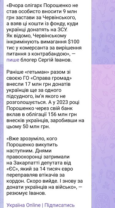 Єдиний фонд ,якому довіряю .Хоч гроші на заставу не з фонду ! Скільки можна повторювати ? І не це - важливо ! Це величезна подія насправді Ця подія вселяє надію на те, що ми зможемо вигнати щурів та обрати нормальну украінську владу .Правда ,якщо Зеля не встигне нас здати з погрозами .Від слів : у другому самі і миру має приймати участь Росія- в мене кров закипає в жилах. Уявіть собі Гітлера на перемовинах зі Сталіним десь в Швейцарії.