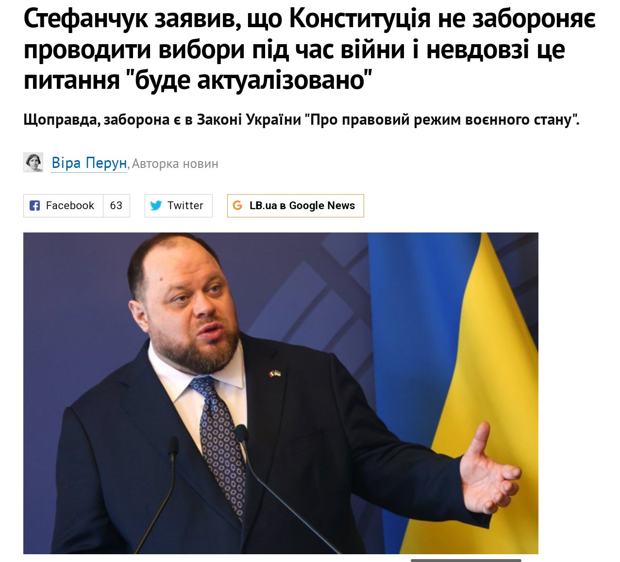 "Идею проведения выборов во время военного положения, можно классифицировать, как маловероятную", - сказал спикер парламента.