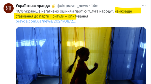 З усіх партій українці найкраще ставляться до НЕІСНУЮЧОЇ партії Притули. Це все, що треба знати про те, як українці вчаться на своїх помилках, саморозвиваються та поступово перетворюються на суспільно та політично свідомих громадян.