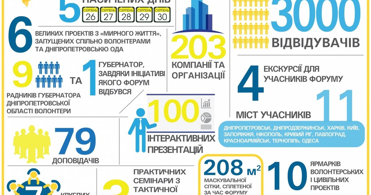 В Днепропетровске завершился Всеукраинский форум волонтеров "ГромадаFest", который собрал 203 компаний и организаций из различных регионов Украины.