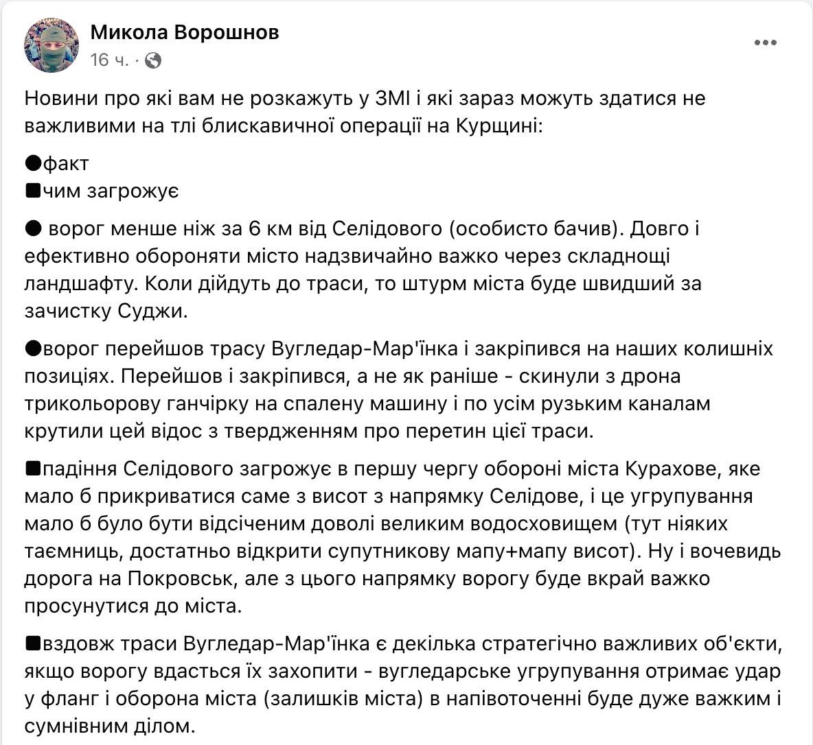 После начала операции в Курской области РФ на отдельных участках фронта в Украине ухудшилась ситуация.