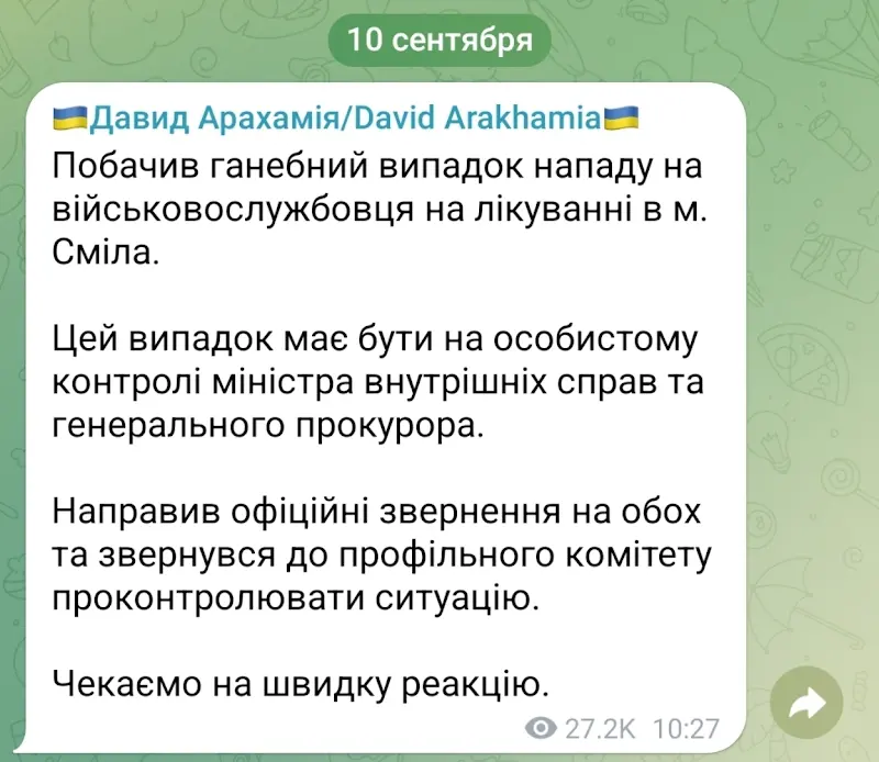 Побиття військового, Дмитруком з Куницьким, Арахамія не побачив, при цьому Куницькій і досі у "Слузі народу", але без підозри. А тут Арахамія вирішив попіаритися, щоб трохи нагадати про себе. Краще нехай нагадає, як писав листа до Лондонського суду про те, що Роман Абрамович врятував 400 000 життів українців. Писав для того, щоб на Абрамовича не накладали санкції. Альтруїст, херов.