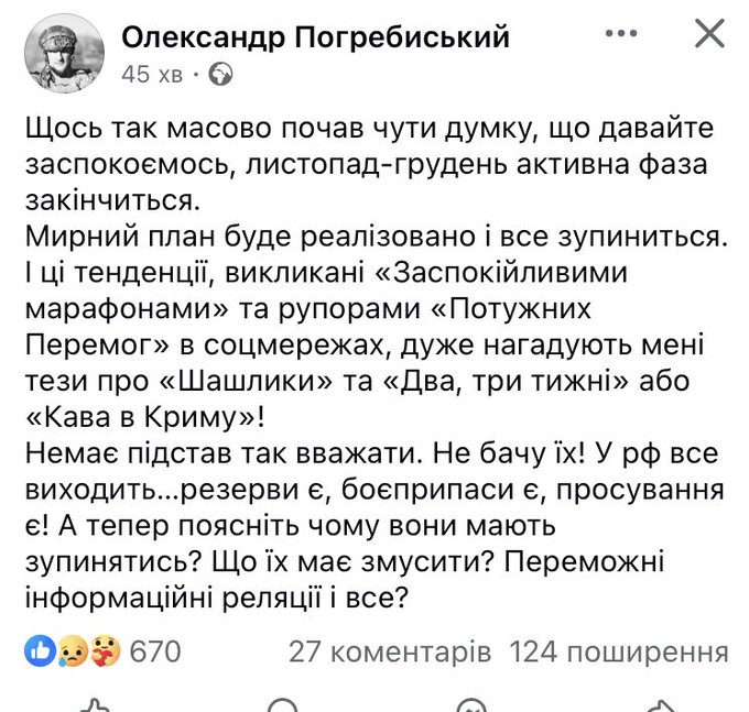 - настрашити народ, здійснивши масові облави тцк в балаклавах на культурні заходи (концерти), по ресторанах, ТРЦ і фітнес-центрах. Зробити показуху, що "війна торкнеться кожного", якщо ви не погодитесь на подальшу заморозку;
