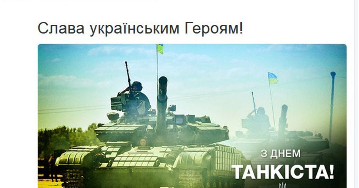 Как сообщает Цензор.НЕТ, поздравление глава государства написал в своем Твиттере."С Днем танкиста! Слава украинским Героям!", - отметил Президент.