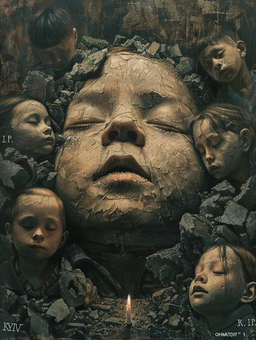 Многие сотни убитых детей в Украине, это дело рук российских оккупантов-агрессоров! Не забудем! Не просим!