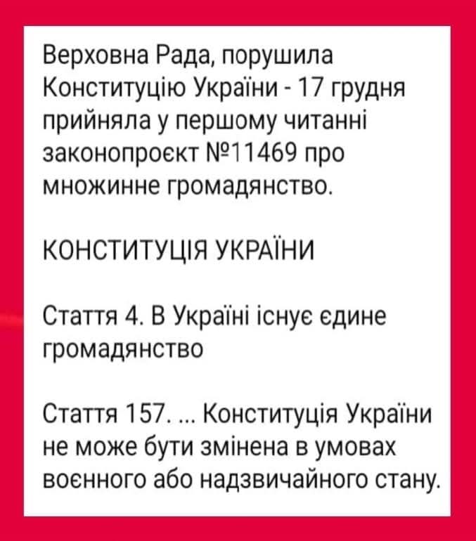 17 декабря Рада поддержала за основу законопроект о множественном гражданстве.