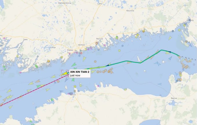 Коли це сталося, над електрокабелем пропливав такий собі китайський корабель "Сіньсіньтянь". Цей "Xin Xin Tiang" - корабель-близнюк "NewNew Polar", який знищив підводний газопровід BalticConnector у 2023 році.