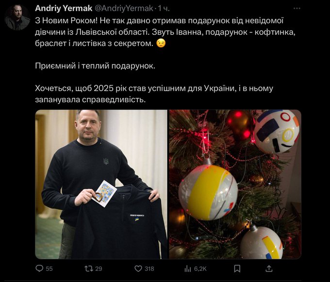 Андрій Д`єрмак опублікував зворушливий подарунок - дівчинка зі Львівської області надіслала йому браслет та листівку