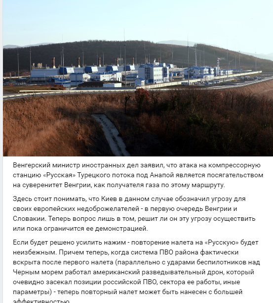 Почнемо з того, що атаковані на території Рашки "пристрої Турецького Потіку" не мають до Турецького Потоку ЖОДНИХ ВІДНОСИНЬ! Турецький Потік починається з БЕРЕГА Чорного моря і то, що є ДО того - виключно "внутрішнє діло Рашки" (сама Рашка так неодноразово заявляла у подібних випадках з різними "потоками").