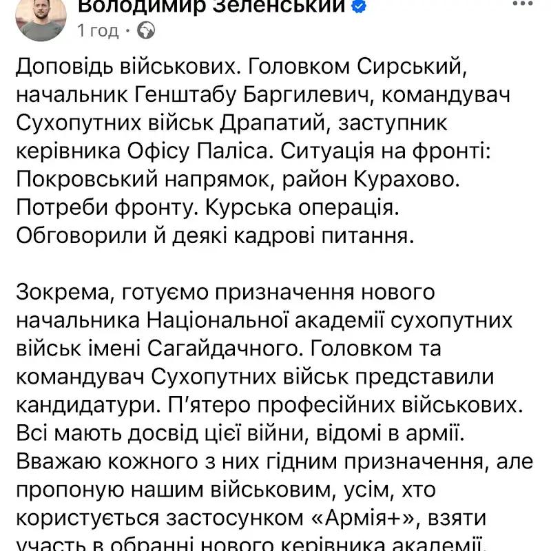 Звільніть мене від такої високої честі. Заміну мені знайдіть шляхом голосування через «Армія+».