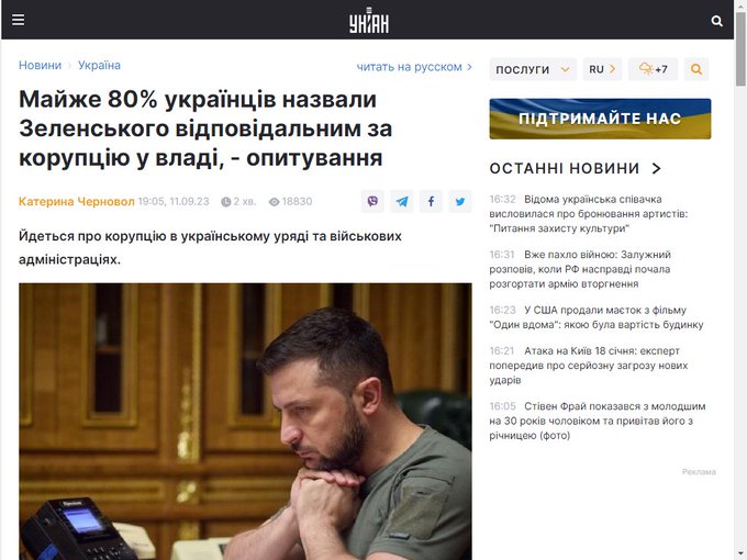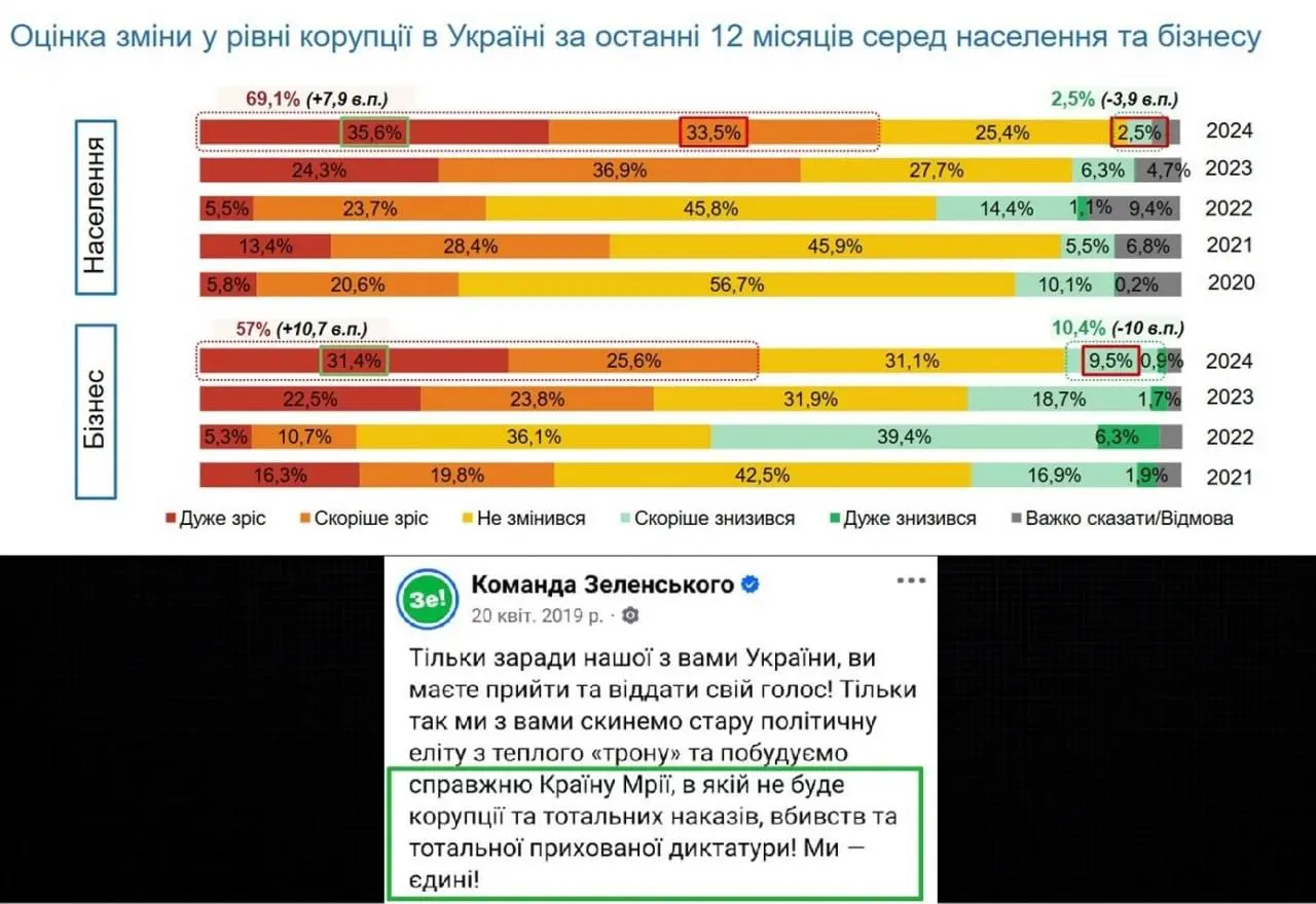 "56% українців кажуть, що відповідальним за зростання корупції є Зеленський та ОП".
