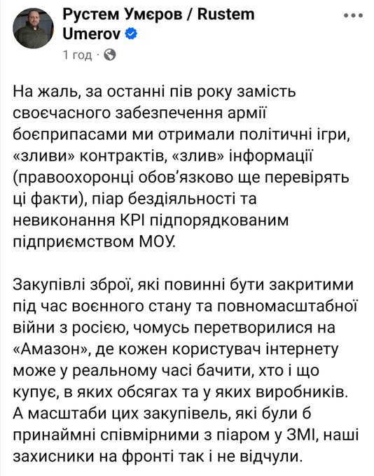 Але я пропоную піти далі - нехай Умєров, одноосібно призначить сам себе одночасно своїм заступником (усіма насправді), керівником ДОТу, АОЗу, прем'єр-міністром, міністром фінансів та головою Нацбанку. Задля турботи про ЗСУ звісно.