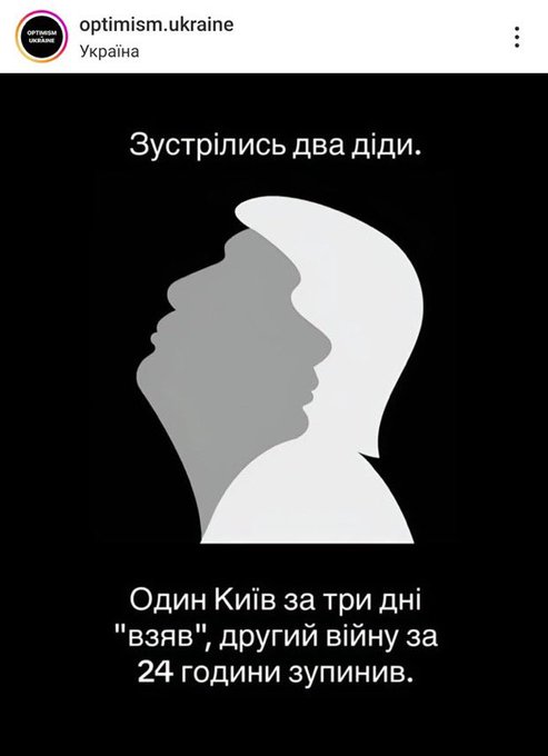 ну ось приходить Трамп і каже "ваші сили рівні, українці воюють не гірше за русскіх, ви русскіє маєте визнати їх за націю яка має власний шлях, а я хто ? а я суддя в октагоні ufc, американці у війні участь не брали, про обсяги американьскої військової допомоги смішно говорити - це ви, русскіє, сам на сам з українцями билися - і всьо, нічия від#біться від них, а то . . . "