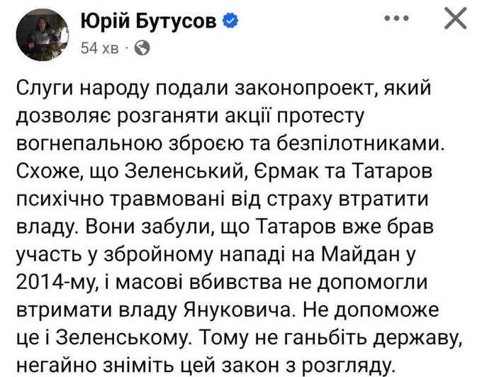 "Генерал Федоров не собирается скрываться, готов встречаться со следователями и прокурорами и готов встретить их завтра на своем рабочем месте на улице Лаврской, 16. ... Мы требуем от ГБР, от Офиса Генпрокурора, от Офиса президента и лично президента Зеленского как гаранта Конституции уважать права и свободы граждан нашего государства", - подчеркнул Головань.