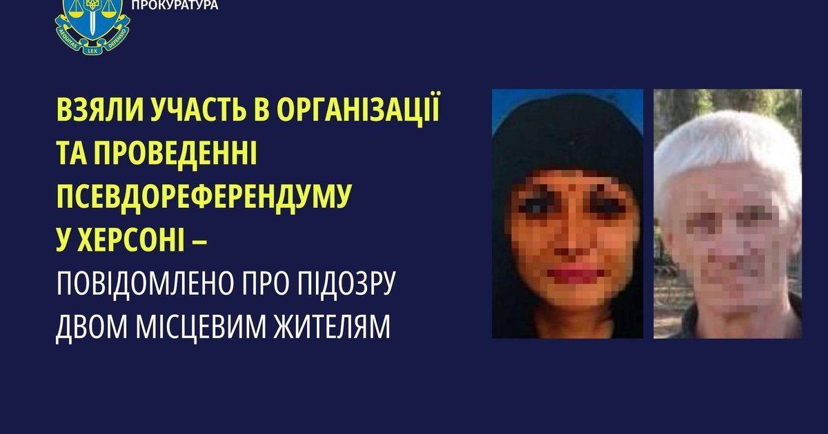 Двум местным жителям объявлено подозрение за участие в организации и проведении псевдореферендума в Херсоне в сентябре 2022 года.