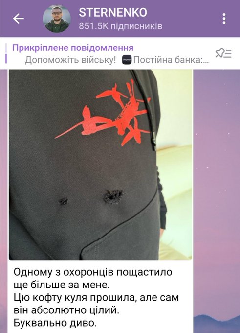 Об этом заявил сам Стерненко, рассказывая о покушении, передает Цензор.НЕТ.