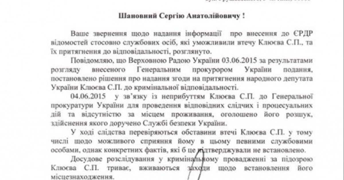 Как известно, 3 июня Верховная Рада дала согласие на задержание Клюева. Несмотря на то, что было известно о попытках Клюева сбежать, не были приняты меры, чтобы помешать этому.