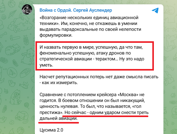 Под атакой оказались аэродромы "Оленья", "Белая", "Дягилево" и "Иваново". Поразить удалось 41 российский самолет - среди них А-50, Ту-95 и Ту-22 М3.