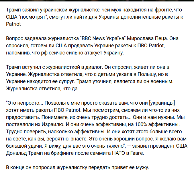 p.s. Так, був у трампа настрій, сказати добре слівце. Невже кожні 5-хвилинні зміни настрою трампа треба бігом строчити в медіа?