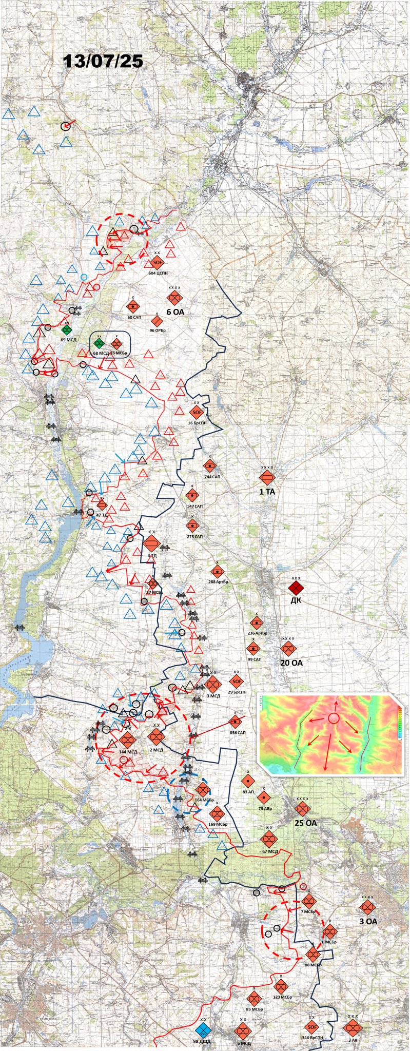 На Северо-Слобожанском направлении за прошедшие сутки, 14 июля 2025 года, противник пытался улучшить тактическое положение в Волчанске. Успеха не имел.