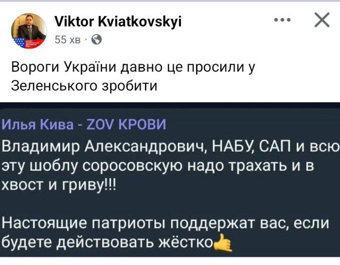 Нардеп Ярослав Железняк сообщил, что Рада на заседании 22 июля хочет подчинить НАБУ генеральному прокурору. Шабунин, комментируя законопроект №12414, отметил, что Зеленский уничтожает ключевые антикоррупционные достижения Революции Достоинства.