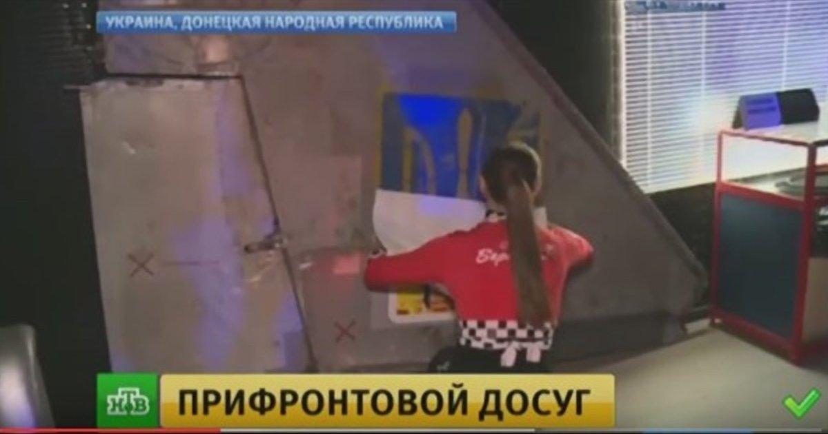 Как информирует Цензор.НЕТ со ссылкой на Лигу, об этом пишет региональный сайт Gorlovka.ua, на открытии клуба, помимо съемочной группы российских пропагандистов НТВ, присутствовали также сидящие за столиками боевики в камуфляжной форме.Поскольку герб Украины на обломке самолета "раздражает" отдыхающих террористов, владельцы клуба заклеили его афишей, пишет источник со ссылкой на видеосюжет кремлевских СМИ.