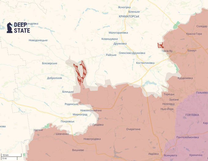 Відсутність будь-якої реакції зі сторони Зеленського і Сирського на стрімкий наступ ворога, який на Ставці здебільше доповідає про успіхи на Сумському напрямку, вочевидь свідчить про прийняте зебілами рішення про здачу без бою агломерацій Покровськ-Мирноград, Дружківка-Костянтинівка та Краматорськ-Слов'янськ. Тоді Лиман відпадає сам-собою.
