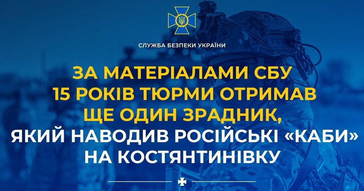 По материалам СБУ 15 лет тюрьмы получил предатель, который наводил российские "КАБы" на Константиновку