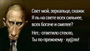"Я обделался, уложил в чернозём Украины 300 тыс. мужиков, ещё 800 тыс. сделал калеками, а 1 млн. заставил бежать за границу, ухайдокал с 2014 года около 2 триллионов долларов на войну и привёл российский народ к обнищанию, убил репутацию и перспективы своей страны на ближайшие лет 40-50 (если не больше), подорвал обороноспособность государства, потому что оголил все границы из-за украинской войны, приблизил НАТО и сделал его реально враждебно настроенным ну и, вишенка на тортике, сделал страну вассалом Китая, Ирана и Северной Кореи".