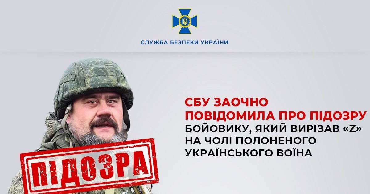 Служба безопасности Украины заочно сообщила о подозрении боевику, который вырезал "Z" на лбу пленного украинского воина